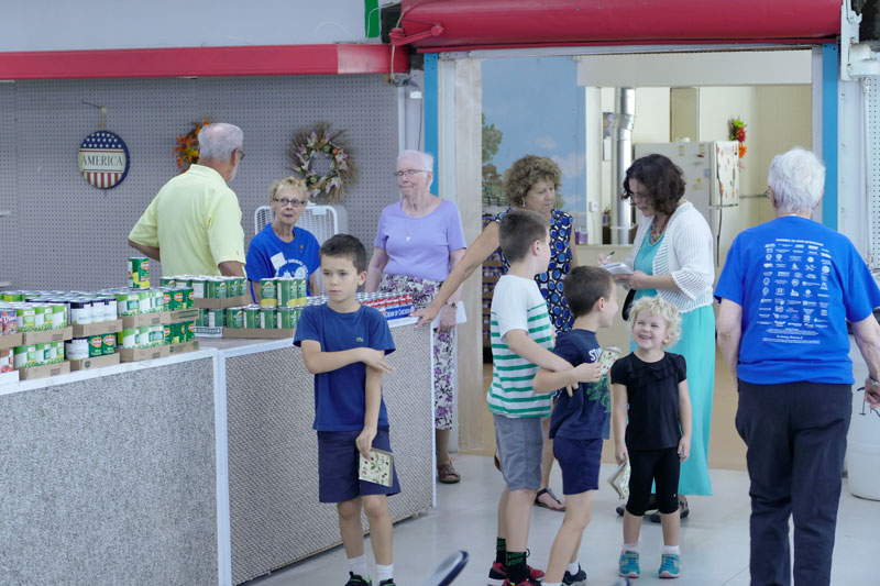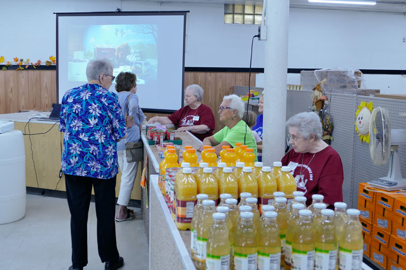 Jeanette Wrin (left) joins other volunteers who are prepared to answer visitor questions about how the pantry works.