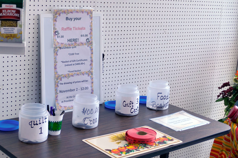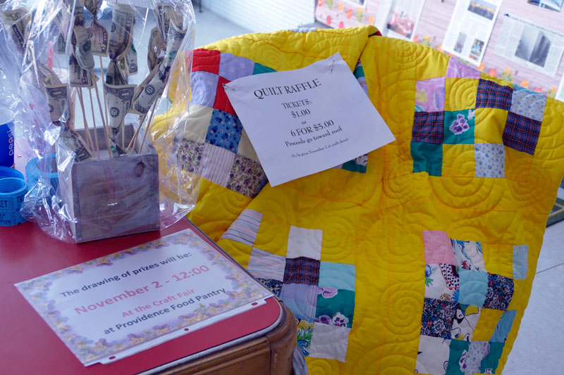 Raffle tickets sell for a chance at a beautiful quilt, a food basket, a money tree and more.