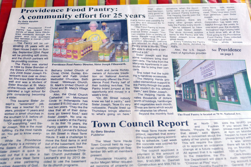 Providence Food Pantry celebrated its 25th anniversary of service to West Terre Haute residents on Sept. 22, 2019. Last year, the pantry, with the support of Helping Hands, area churches and civic groups in West Terre Haute, worked to serve 4,000 individuals.