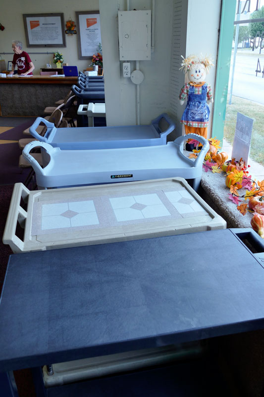 Since the pantry was expanded, residents can use shopping carts to gather their groceries and load them in their cars.
