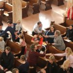The Providence community, including Providence Associate Tracy Biggs-Green and her family, offer each other the sign of peace