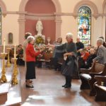 Providence Associate Sheila Galvin visits with Sister Rose Virginia Eichman before mass