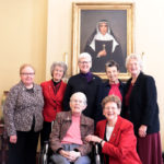 The Sisters of Providence of Saint Mary-of-the-Woods, Indiana, honored their 75-year Jubilarians on Tuesday, Dec. 17, including (front) Sister Miriam Clare Stoll and (back, third and fourth from left) Sister Florence Norton and Sister Mildred Giesler. They are photographed with (back, from left) General Councilors Sister Mary Beth Klingel, Sister Lisa Stallings, Sister Jenny Howard, General Superior Sister Dawn Tomaszewski and General Councilor Sister Jeanne Hagelskamp. Not photographed: Sister Rita Clare Gerardot.