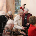 Celebrating 70 years as Sisters of Providence: Sisters Regina Marie McIntrye, Joann Quinkert (formerly Sister Joan Margaret), Suzanne Buthod (formerly Sister Mary Judith), Rosemary Eyler (formerly Sister Mary Luke), Charles Van Hoy, Marian Brady, Barbara Ann Bluntzer (formerly Sister Mary Martha), Marie Denise Lucey and Margaret Norris (formerly Sister Marie Angeline).