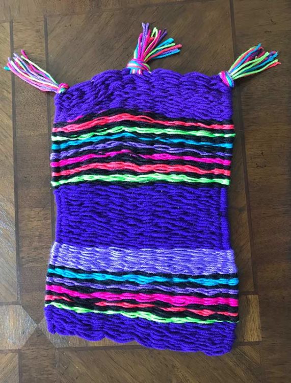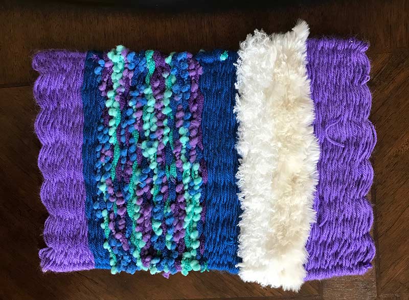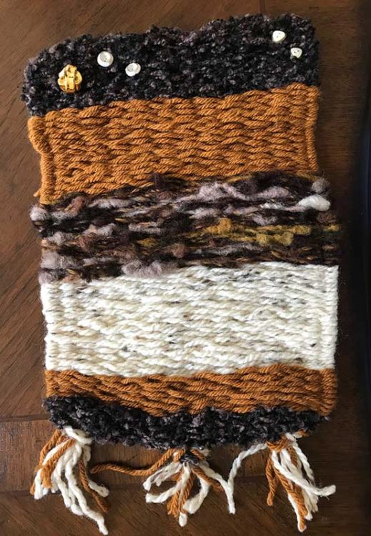 Also wanting to help others, I searched my soul. Stretching his idea of comfort from music, I thought of other arts: poetry, other writing, painting, and so on. Then it struck me: weaving! It is something I do on a simple lap loom that is therapeutic, centering, peaceful, and yes, like a prayer. I love picking the colors and the beauty of the end product.
