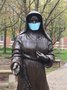 I remember reading the letter from Saint Mother Theodore to the sisters in Madison about the cholera epidemic. (That epidemic, which was worldwide in the 1840s and 50s, caused massive deaths. Russia lost 1 million citizens in one year. Today, 143,000 people still die of cholera around the world, and that is with a known cure and vaccine.) Her touching letter reminds me of our Sister Dawn, and her Council, who are taking every precaution imaginable to safeguard the sisters, the Health Care residents, the staff and anyone else who walks our Woods.