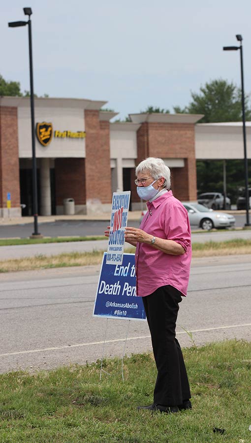 Sister Nancy Bartasavich holds a sign speaking out against the death penalty during Wednesday’s protest.