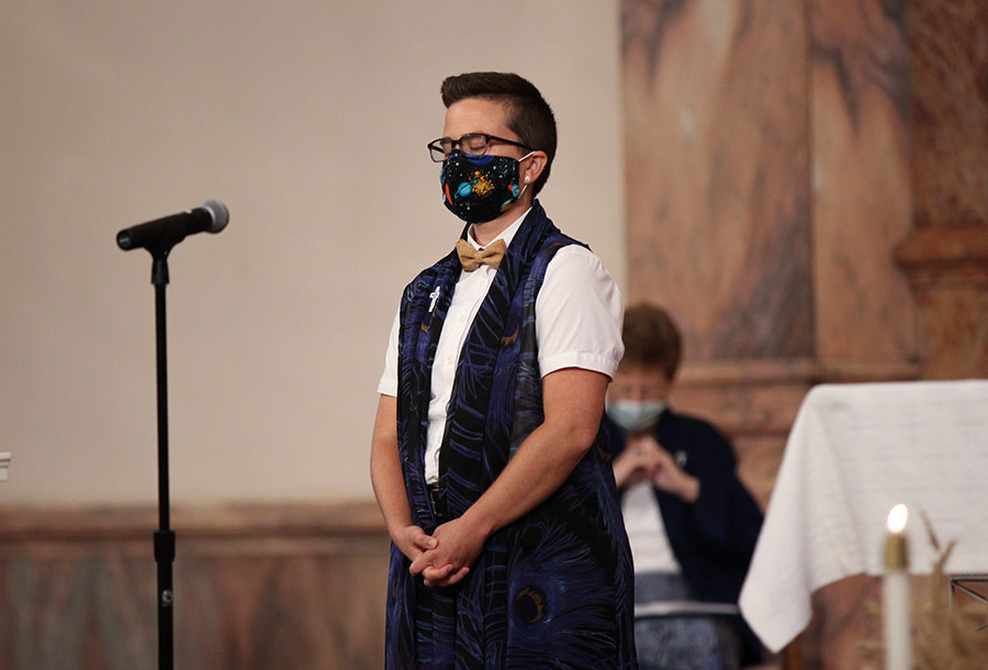Socially distanced sisters in masks in the church as Sister Corbin professes vows