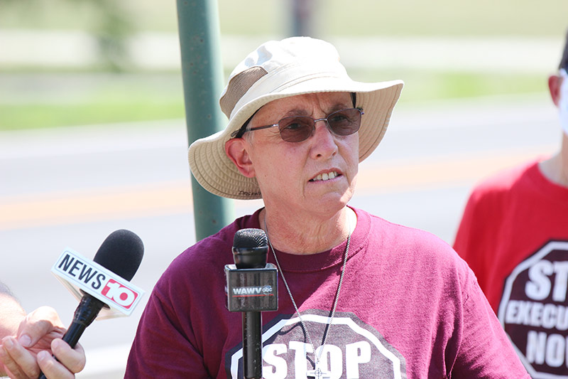 A year ago, we formed the Terre Haute Death Penalty Resistance to collaborate in working to abolish the death penalty and bear witness to federal executions. We have members from Catholic Mobilizing Network; Indiana Catholic Conference; Indiana Abolition Coalition; The Sisters of Providence; Oldenburg Franciscans; Interfaith Council of the Wabash Valley; Amnesty International; students from across Indiana; and various other individuals dedicated to abolishing the death penalty. We gather in protest and vigil at the main entrance to the USP Terre Haute.