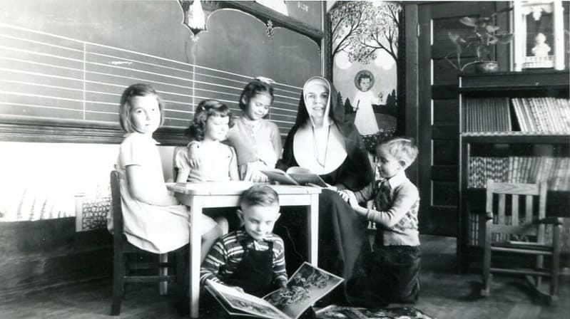Sister Anne Clementine (RIP) in her first-grade classroom.