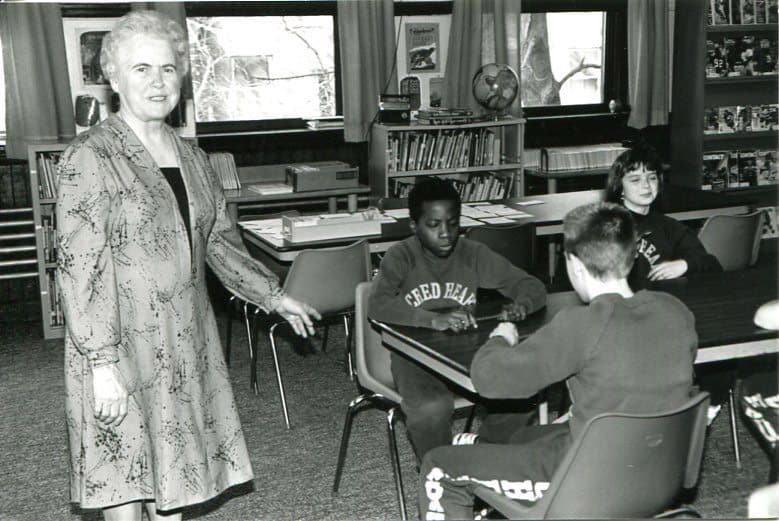 Sister Claire Hanson in her classroom with students at St. Rose in Chelsea, Massachusetts in 1992.