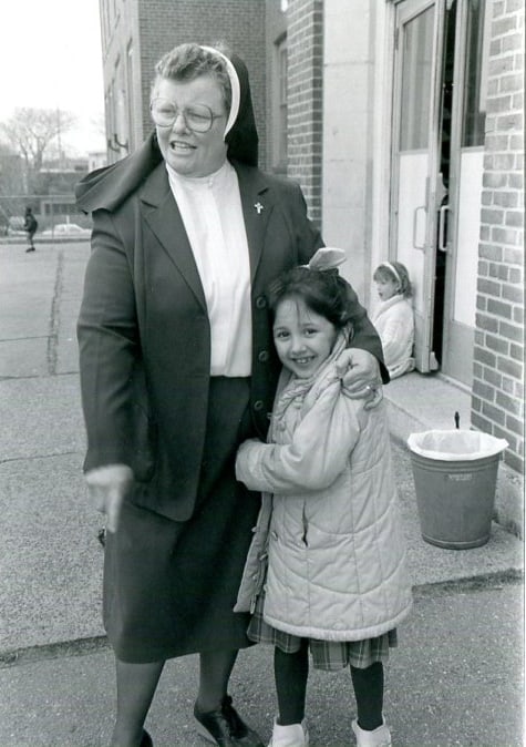 Sister Eleanor Marie Hubner (RIP) with a student during her days as principal at St. Rose School in Chelsea, Massachusetts.