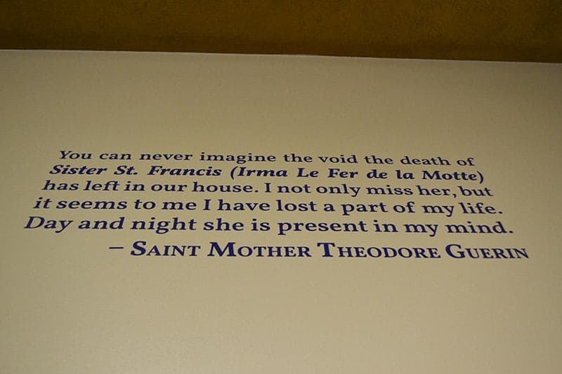 A quote from Saint Mother Theodore Guerin regarding Sister St. Francis Xavier Irma Le Fer De La Motte.