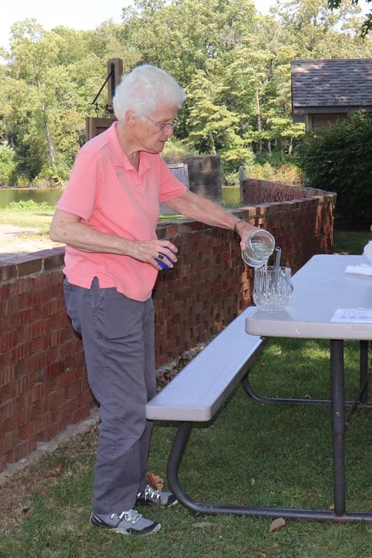 Sister Jean Fuqua, SP, mixing St. Joseph’s lake water with holy water for the blessing.