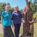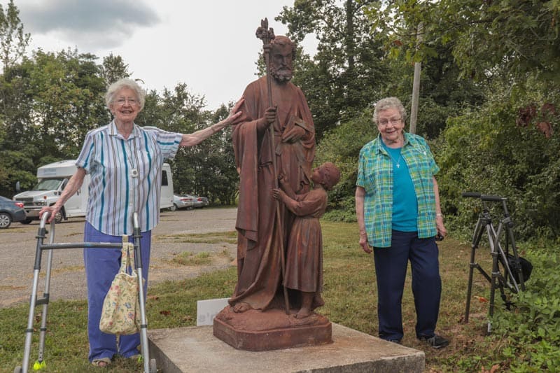 Sisters standing with the new St. Joseph’s statue.