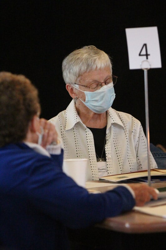 Sister Jenny Howard listens as another sister speaks
