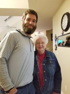 Friend of the Sisters of Providence Frank Bussing (left) with special guest Sister Maria Smith.