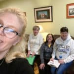 A group of associates and sisters gathered in the Indianapolis area to participate virtually together! From left: Adrienne Bates Brown, candidate-associates Sheila Lauck, Catherine Dearing and Kathy Newport.