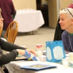 Providence Associates Lorrie Scheidler and Sheila Galvin share at their table.