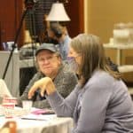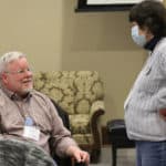 Providence Associate Stephen Modde speaks with Providence Associate Gail Jones.