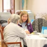 Providence Associate Eileen Horan chats with Associate Jean Smith.
