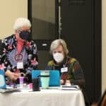 Retreat presenter Sister Jan Craven, SP, and Providence Associates co-director Debbie Dillow oversee some logistics of the retreat.