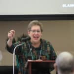 Retreat presenter Sister Paula Damiano, SP, makes a point as she speaks.