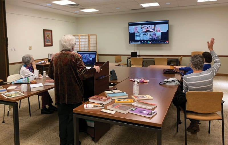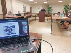 It took some trial and error to make the experience pleasant for all, but eventually the challenges lessened. By using multiple computers and webcams, both in-person and online attendees are able to see each other as well as the presenter. The real game changer, however, was the addition of a special microphone/speaker combo so everyone could hear each other clearly.