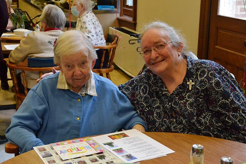 Elizabeth had a simple faith life, expressed especially in her devotion to the Eucharist and to the Blessed Mother and the rosary. During the pandemic, she and Sister Jane Michael would gather daily to watch the Mass on Jane Michael’s I-phone. Even in sickness, Elizabeth wanted to be taken to Mass every day and would often struggle to participate by standing.
