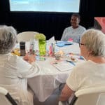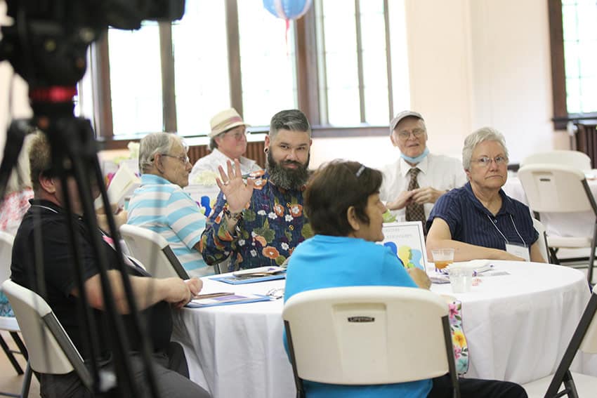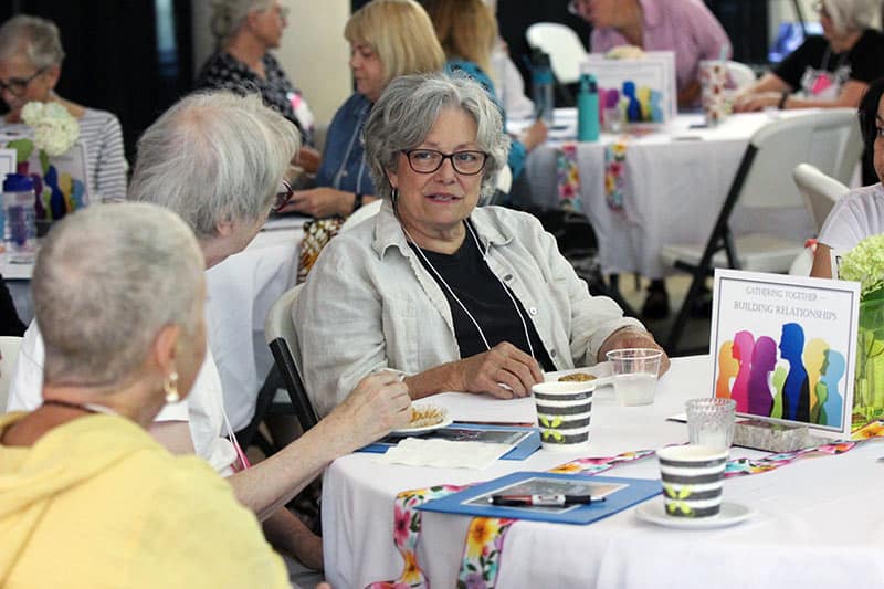 The Providence Associate community members attending engage in table sharing.
