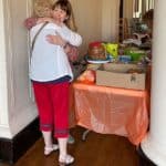 Providence Associate Mel Marino Wolff steps away from setting up the snack table to hug another associate