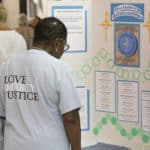 Providence Associate Beverly Adams checks out the Providence Circle informational posters.