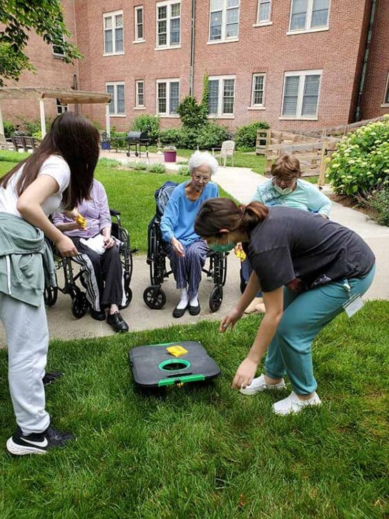 Though I am Catholic, I was worried for the nonreligious volunteers in my group. After all, they had never seen a real nun or even heard of the Rosary. I was so pleasantly surprised by how welcoming the sisters and residents at the Woods were and how eager they were to teach them about our customs.