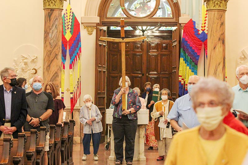 Sister Maureen Fallon carries the cross during the Jubilee celebration for Sister Evelyn Ovalles.