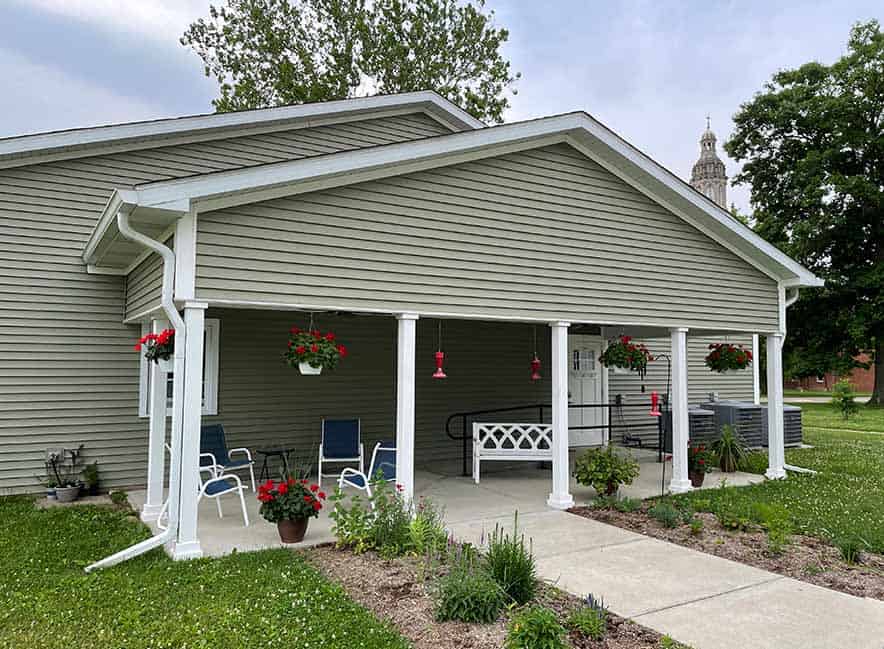 The building includes 10 single bedrooms, each with a private bath. One of the rooms will be permanently occupied by Sister Mary Beth Klingel, SP, who welcomes guests at Woodhaven.