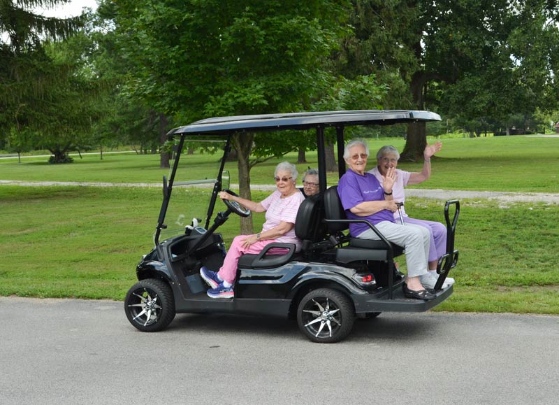 Thanks to the generous support of those dear to her, Sister Ann Matilda Holloran, SP, recently expanded her “golf cart ministry” for sisters at the motherhouse. With the donation of a brand-new golf cart dedicated for her ministry, she can now transport sisters around campus and give them a lift daily. Perhaps a sister wishes to attend Sunday Brunch at O’Shaughnessy, catch the excitement of a soccer game at Saint Mary-of-the-Woods College or say hello to her favorite alpaca — Sister Ann Matilda provides door-to-door transportation services with a smile. Her ministry helps sisters stay connected, gives a sense of freedom and lifts the spirits!