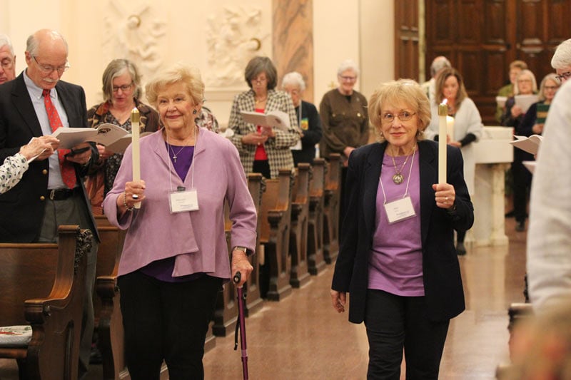New Providence Associates Marilyn Antonik and Ann Clem carry candles in the entrance procession.