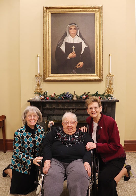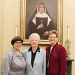 Sister Margaret Heese, (center) who celebrated 75 years with the Congregation, along with General Councilor Sister Laura Parker (left) and General Superior Sister Dawn Tomaszewski.