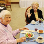 Sister Lucille Nolan (back), who celebrated 75 years with the Congregation, with her sister, Sister Carol Nolan during a special dinner.