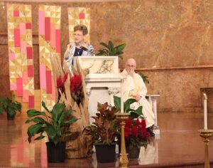 Guess who else attended church at St. Joseph’s? Anji Fan. Chongqing (Chaang ching) is Anji’s hometown. “It was not you who chose me; it was I who chose you to go forth and bear fruit.”