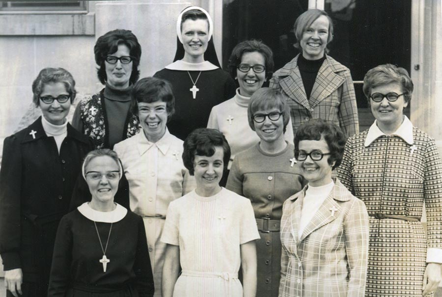 With Vatican II changes, a world of different opportunities outside of education opened. Sister Joann became a pastoral associate first at her home parish, Holy Trinity in New Albany and then at nearby St. Mary’s after Holy Trinity was destroyed in a fire. It was new for a woman to be in such a position, but Sister Joann grew up in the neighborhood and had been around German Catholics and Irish Catholics her whole life, and she knew people from both parishes. She knew who would be good to work with, to get things done. It was a good fit. After four years she moved on. The women of the parish wondered what they would do without her. “Well,” she told them, “you’ve got your foot in, don’t take it out.”