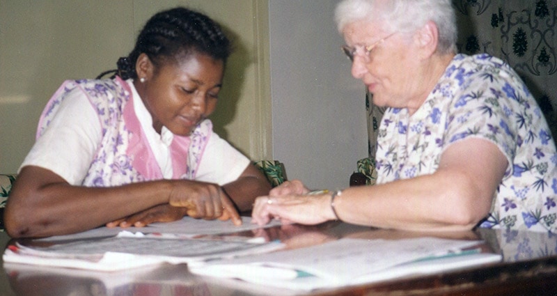 She had traveled overseas with her Aunt Edie, who was looking for a compatible companion and chose Sister Joann. They made a pilgrimage to Fatima, Lourdes and Rome; a 10-day trip that encompassed Portugal, France, Spain and Italy. She also traveled to Ghana with her good friend Sister Laurene. They were invited to come visit by another Sister who was working in Ghana, so they made a sabbatical for eight weeks at the Spiritual Life Center. She tutored a laundress in literacy, they both tutored English and math. It was a wonderful time. Sister Joann marveled at how even while struggling the people managed their Ghanaian traditions and their lives.