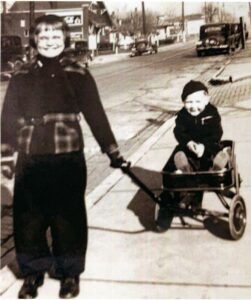 “Where did I get that? My parents loved everybody. Father worked for St. Vincent de Paul. One Saturday evening we were sitting down to our chili and pie. A knock came on the door. A man was hungry so father invited him to come inside and sit with us and eat. There was a railroad track two-to-three blocks from us. We probably had people who knew to come to us for food. My mother would not turn anyone away. It was a provincial neighborhood, very stable. Many kids lived one block away. We’d play under streetlights in the middle of the street. My mother was always home.”