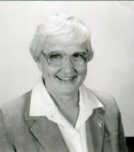 Sister Joann gave up the religious habit after it was first modified, then shortened, then the choice was hers. One of the concerns asked of younger sisters: What do we do with our hair? She related a story that occurred on a plane. Her seatmate on the plane, a stranger, was in conversation with Sister Joann who eventually told this seatmate she was Catholic and a little later on that she was a Sister. She asked her seatmate on the plane, “If I had been in a habit, would you have come and sat next to me? And she said she probably wouldn’t. I told her that’s why we gave it up. We wanted to be among the people, to do our mission work among the people, and not be different from them.”