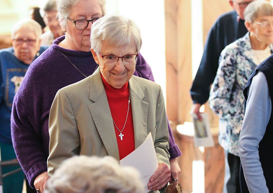 Following graduation in 1948, she entered the Congregation Feb. 2,1949, and was received into the novitiate Aug. 15 that same year. She was given the religious name of Sister Mary Luke, later returning to her baptismal name. She made her first profession of vows in 1951 and her perpetual vows on the same date in 1956.