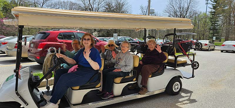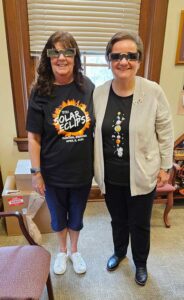 When the day of the eclipse finally arrived, I witnessed two of our Sisters, Corbin and Emily, and a Providence Associate, Diane, very early in the afternoon transporting Sisters to the gathering place via golf carts.