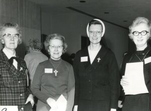 “What came Marian’s way” in 1957 was a return to her beloved Washington, D.C., and enrolling as a student at Catholic University of America, where she earned both her master’s and doctorate in philosophy, completing the latter degree in 1962. Marian’s niece Sharon said of these years: “What I had always wished to tell Aunt Marian in person, but never got around to doing, was how much she inspired me as a young child in the glow of her clear joy and dedication to her callings as a Sister of Providence and educator. As an adult, that admiration deepened, as I grew to understand the depths of her intellectual and ethical inquiry. It is only recently that I have belatedly come to realize what a groundbreaking life she led, deciding to pursue a Doctorate in Philosophy in the early 1950s, in a male-dominated discipline and when the expectations for women were overwhelmingly domestic and practical. She never once talked to me about what that choice felt like, to do a Ph.D. in Philosophy at that time! She seemed to embody it as truly ‘nothing much.’ I thus had never thought about what a radical choice it was, and the courage it must have taken.”