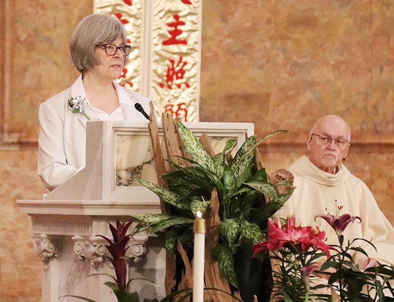 I invite us all to stand now and to have our jubilarians come forward (except for Lisa, who is up in the organ loft) and lead us in renewing our vows as Sisters of Providence.