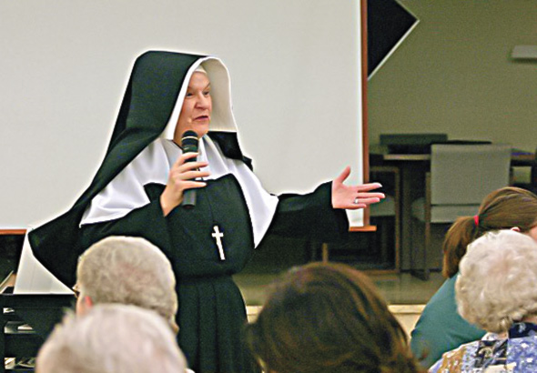 The presentation is 30-60 minutes, depending on the audience, with a question and answer period afterward which often proves to be a lively participatory experience. A suggested donation of $250 is requested for the performance. Materials can be sent in advance to prepare the audience for the presentation if requested. Prayer cards and brochures will be available for distribution after the presentation. Fill out the form below to ask Sister Sue any questions you may have or to request a presentation.