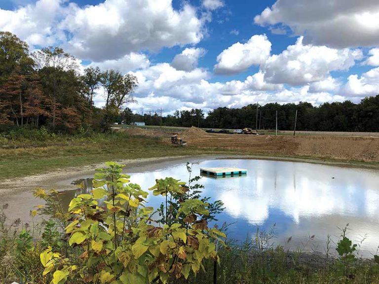 The lake water disappeared. In February 2018, days and days of heavy rain caused several large trees to be torn loose from the earthen berm. When the trees fell, a section of the berm collapsed, allowing the lake water to “escape.”